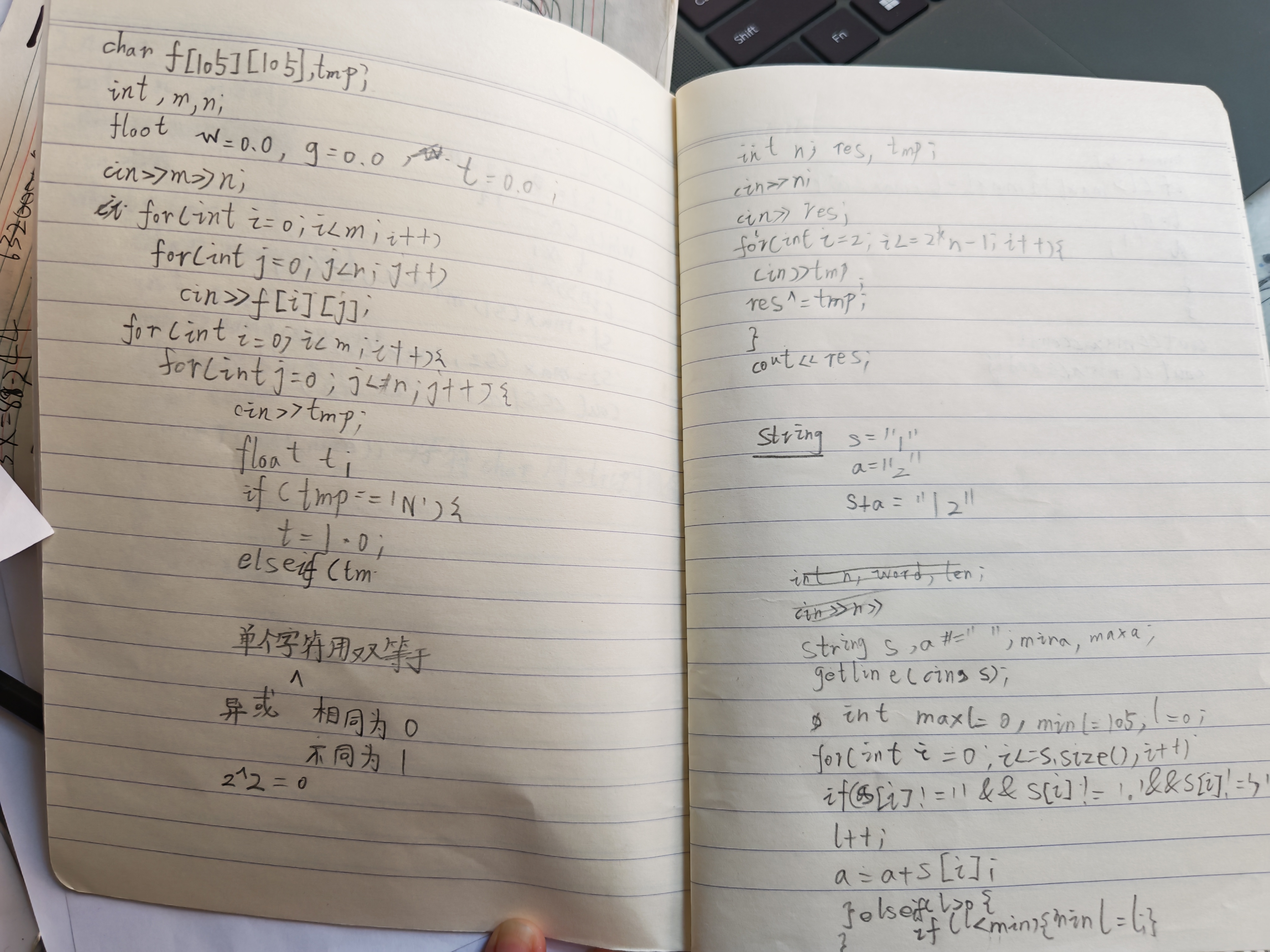 异或^:相同为0,不同为1 2^2=0 3^3=0 3^2=1(按位操作)