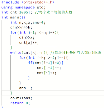 先把要输入的定义了,然后在定义一个数组(x)。 将每人等级输入始让x将对应等级位置加一。 然后再用一个循环(while)如果x[k]不等于n, 就从k到2看这个数的上一个等级是否为0,否就将这个等级加一,直到x[k]等于n。