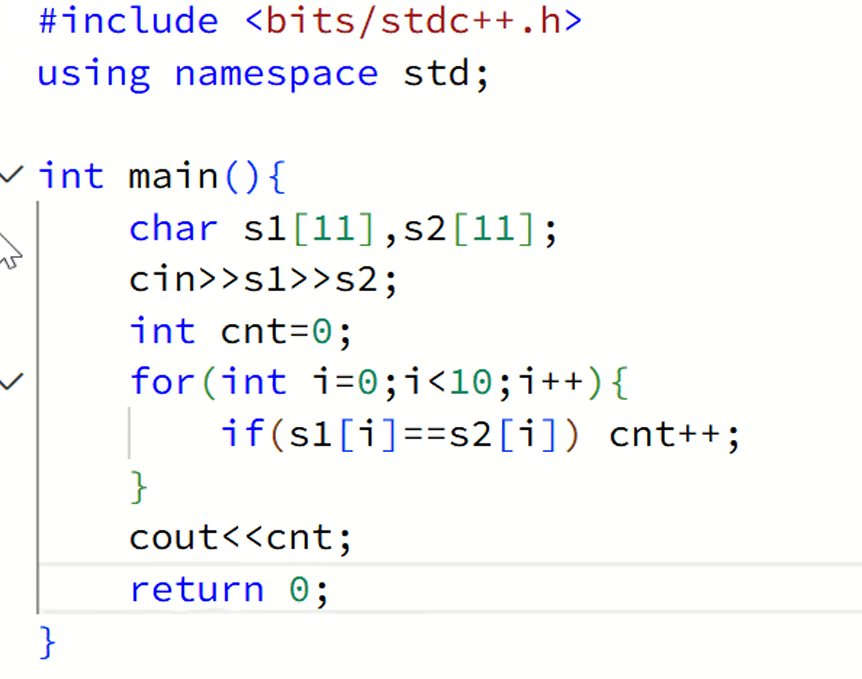 输入两个字符串,判断两个字符是否相等用一个变量(s)记录。最后输出s就行。