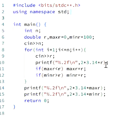 定义的变量用double型,套用一下圆的周长公式,输出保留两位小数(例:printf("%.2lf",周长);)就可以了。
